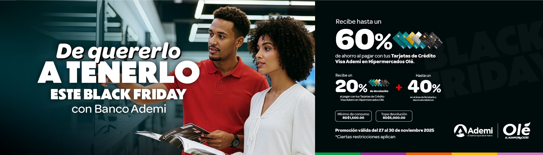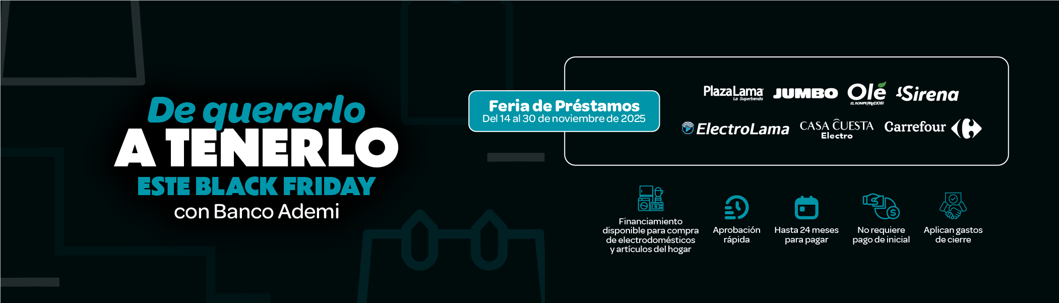 Banner web ole BFBanner web-Sirena Black FridayBanner Web – Multilogo-BFbanner-web-marbetesBanner Web – CredimejorasPor Ademi tus remesas tan readyBanner-Web-CoralCuenta de Ahorros Digital AdemiDerechos y deberesADEMI—Promocion-Hoteles Banner-Ya nos conoces – Préstamos AdemiSlide BackgroundSlide Background ¡Ahorra! ¡Solicita tu préstamo! ¡Solicita una tarjeta de crédito! ¡Recibe tus remesas! Noticias Ademi Feller Rate Calificó en A la solvencia de Banco Ademi. Las perspectivas de la calificación son estables.Banco Ademi fortalece el financiamiento a microempresas con acuerdo con Bio InvestLa cartera de crédito bruta de Banco Ademi creció en RD$1,343 millonesBanco Ademi obtiene la calificación Oro en Certificación de Protección al ClienteEl Banco Ademi es reconocido con el Premio a la Gestión Institucional de Inclusión Financiera 2024Banco Ademi y Oikocredit firman acuerdo de RD$550 millones para el crecimiento de sus clientes. Ver más Descubre un mundo de posibilidades con Ademi Online APP Descárgala Descubre nuestras sucursales cerca de ti Conócelas aquí