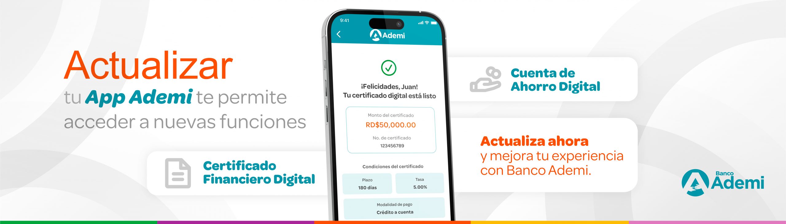 banner-web-marbetesPágina 7Banner Web certificado digitalBanner ria envio directoBanner Web – CredimejorasPor Ademi tus remesas tan readyBanner-Web-CoralCuenta de Ahorros Digital AdemiDerechos y deberesADEMI—Promocion-Hoteles Banner-Ya nos conoces – Préstamos AdemiSlide BackgroundSlide Background ¡Ahorra! ¡Solicita tu préstamo! ¡Solicita una tarjeta de crédito! ¡Recibe tus remesas! Noticias Ademi Banco Ademi culmina con éxito programa de asesoría para emprendedoresBanco Ademi y Symbiotics movilizan RD$1,007 millones para impulsar crédito a las MIPYMESPresidente de Banco Ademi recibe nuevo embajador de la Unión EuropeaBanco Ademi obtiene galardón de FELABAN en Categoría de Innovación y SostenibilidadCliente de Banco Ademi obtiene primer lugar Premios BCIE SOLIDARIOSFeller Rate Calificó en A la solvencia de Banco Ademi. Las perspectivas de la calificación son estables. Ver más Descubre un mundo de posibilidades con Ademi Online APP Descárgala Descubre nuestras sucursales cerca de ti Conócelas aquí