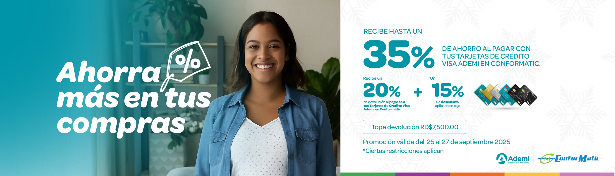 Aprovecha hasta un 35% de ahorro en Conformatic pagando con tus tarjetas de crédito Visa Ademi