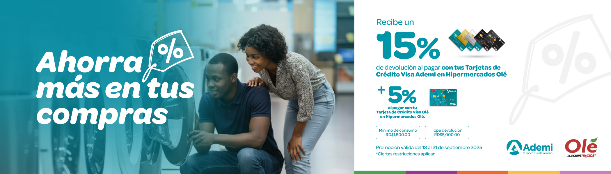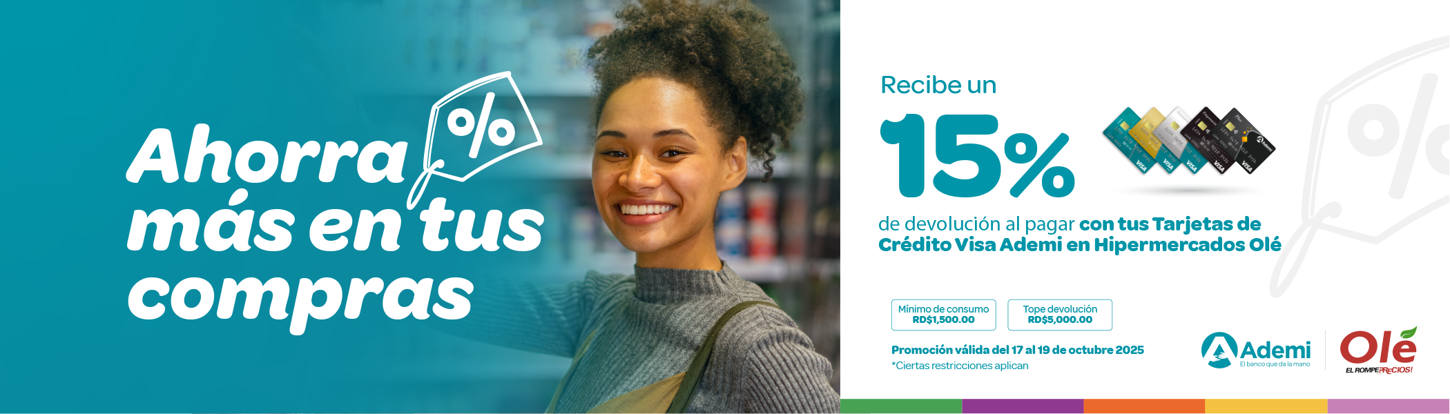 Aprovecha un 15% de devolución en Hipermercados Olé con tus tarjetas de crédito Visa Ademi + 5% extra con Visa Olé Ademi