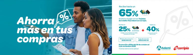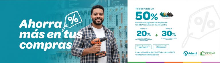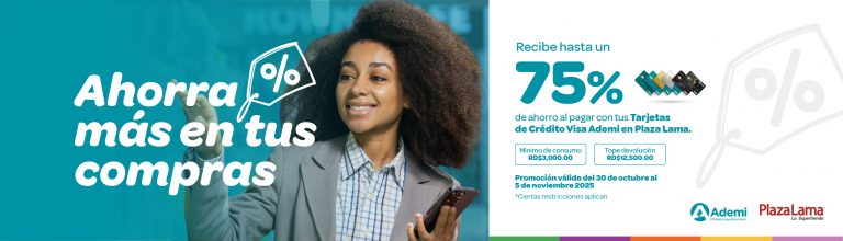 - Recibe el porcentaje de devolución en compras acumuladas con la Tarjeta de Crédito Ademi en los comercios participantes de la promoción.